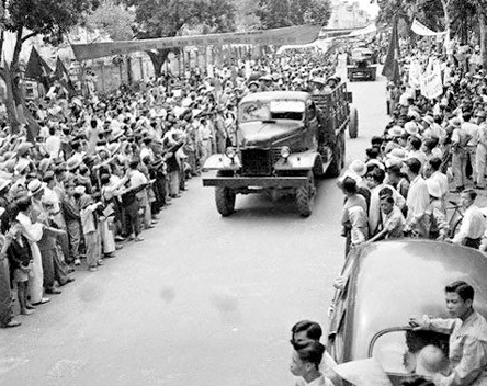 Bộ đội Việt Minh tiếp quản Thủ đô ngày 10/10/1945. Ảnh tư liệu