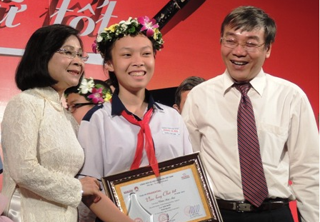 Với nét chữ đẹp, bài văn sâu sắc, xúc động, em Châu Huệ Mai được trao giải học sinh viết văn hay và chữ đẹp nhất khối 8 - 9 tại TPHCM năm 2013.