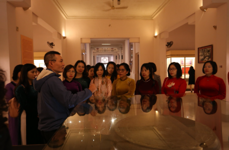 Đoàn đã nghe Hướng dẫn viên của Bảo tàng qua thăm từng khu gian trưng bày
