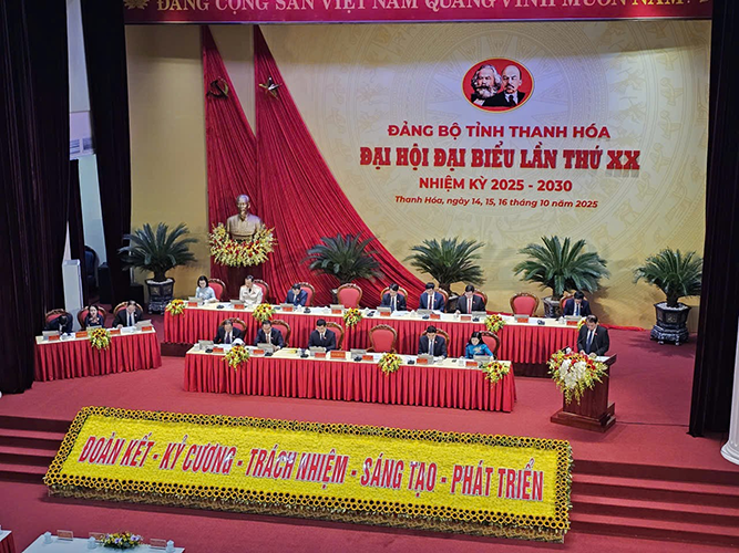 Sáng ngày 14/10, tại Trung tâm Hội nghị 25B, số 133 đường Quang Trung, phường Hạc Thành, TP Thanh Hóa, Đại hội đại biểu Đảng bộ tỉnh Thanh Hóa lần thứ XX, nhiệm kỳ 2025–2030 đã tiến hành phiên họp trù bị. Đại hội diễn ra trong 3 ngày, từ 14 đến 16/10/2025, với sự tham dự của 487 đại biểu chính thức đại diện cho hơn 250.000 đảng viên trong toàn tỉnh và 250 đại biểu khách mời là lãnh đạo các ban, bộ, ngành Trung ương cùng các địa phương.