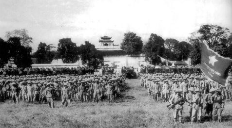 Lễ chào cờ do Ủy ban Quân chính tổ chức hồi 15h00 ngày 10/10/1954. Ảnh tư liệu