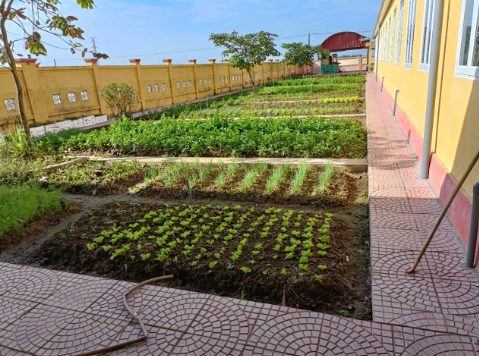 Khuôn viên vườn rau sạch tại Trường Mầm non Thiệu Phú với đầy đủ các loại rau xanh.