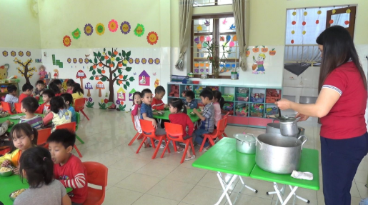Bên cạnh việc quan tâm chất lượng của bữa ăn, các trường luôn chú trọng đến vệ sinh cá nhân và vệ sinh ăn uống, nhân viên phụ trách bếp ăn phải thực hiện vệ sinh trước khi thực hành chế biến thực phẩm cho trẻ. Hướng dẫn trẻ thực hiện rửa tay bằng xà phòng trước khi ăn và sau khi đi vệ sinh để phòng dịch bệnh. Ngoài công tác chủ động của các trường, hàng năm nghành Y tế huyện và nghành Giáo dục, phối hợp chặt chẽ trong công tác y tế trường học như: kiểm tra sức khỏe cho học sinh,giáo viên và nhân viên trong địa bàn toàn huyện, tập huấn kiến thức về an toàn thực phẩm, cách bảo quản thực phẩm, tư vấn cách chế biến bữa ăn đảm bảo dinh dưỡng cho trẻ.