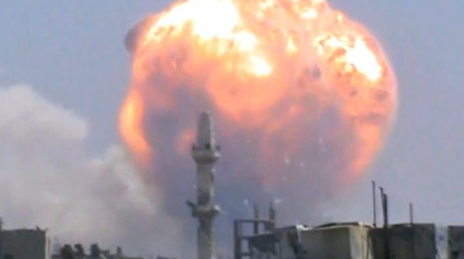 Quả cầu lửa khổng lồ bốc lên sau vụ nổ kho đạn ở thành Homs, Syria