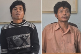 Hồ Văn Công (trái) và Hồ Văn Thành tại cơ quan công an.