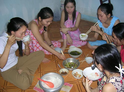 Vì thu nhập thấp, công nhân KCN Tây Bắc - Củ Chi phải ăn những bữa ăn đạm bạc thế này. Ảnh: Hồng Đào