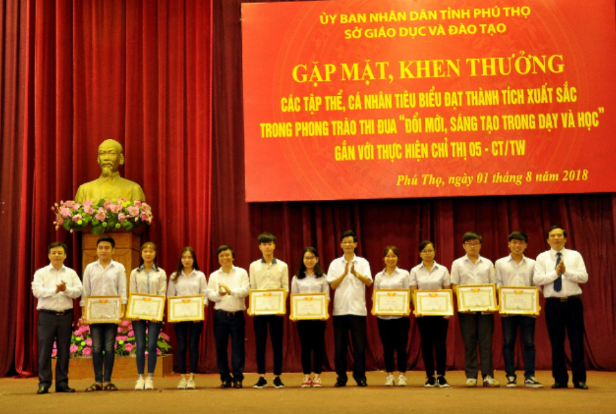 Đặc biệt, trong Kỳ thi THPT quốc gia năm 2018, Phú Thọ có điểm trung bình các môn thi đứng thứ 13 trên toàn quốc; 09 HS có tổng điểm 3 môn đạt từ 27 điểm trở lên, 02 môn (Địa lí, Giáo dục Công dân) đứng trong top 10 toàn quốc về điểm trung bình môn; nhiều HS đạt điểm tối đa (10 điểm) ở các môn Toán, Vật lí, Hóa học,....Tiêu biểu như em Lê Bá Hoàng (Trường THPT Chuyên Hùng Vương) là thủ khoa khối B toàn quốc với 29,55 điểm (Toán: 9,8; Hóa học 10; Sinh học 9,75). Em Hoàng Đức Thuận (Trường THPT Chuyên Hùng Vương) đạt 28,25 điểm khối A (Toán 10; Vật lý 9,5; Hóa học 8,75). Em Nguyễn Thị Hồng Bích (Trường THPT Hạ Hòa) đạt 27 điểm khối C ( Ngữ văn 8,5; Lịch sử 9,0; Địa 9,5). Em Nguyễn Hồng Sơn (Trường THPT Xuân Áng) đạt 27,25 điểm khối C (Ngữ văn 9,25; Lịch sử 8,0; Địa lí 10)...Đây là những tấm gương HS tiêu biểu của tỉnh Phú Thọ. Thành tích trong kỳ thi THPT quốc gia là sự tiếp nối những thành tích mà các em đã đạt được trong suốt các năm học phổ thông. Các em đều là HS giỏi trong nhiều năm học, đạt giải cao trong các kỳ thi chọn HS giỏi cấp Tỉnh, thi chọn HS giỏi cấp Quốc gia.