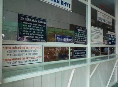 Do đó, bệnh viện quy định, bệnh nhân có thẻ bảo hiểm đúng tuyến, nếu thẻ bảo hiểm còn thời hạn sử dụng 1 tháng thì phải đóng tiền tạm ứng 100.000 đồng; còn bệnh nhân có thể bảo hiểm y tế khác tuyến phải đóng tạm ứng 300.000 đồng, và bệnh nhân có thẻ bảo hiểm y tế cùng chi trả còn thời hạn 1 tháng cũng phải đóng tạm ứng 100.000 đồng.