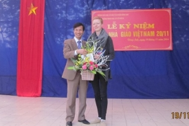Thầy Trương Văn Diện trong dịp kỷ niệm Ngày Nhà giáo Việt Nam 20/11 tại Trường THCS Pascal