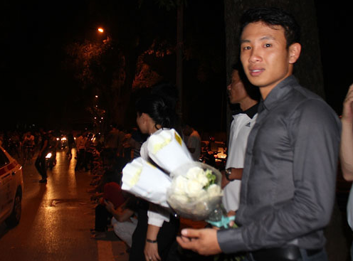 Trước khi đội tuyển đến, “Running man” Vũ Xuân Tiến đã đợi sẵn ở đây với bó hoa trong tay. Anh có mặt với tư cách là đại diện hình ảnh của CLB Arsenal và kết nối giữa đội tuyển với các cổ động viên phía Bắc.