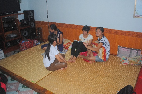 8 giờ sáng, chúng tôi đến thăm nhà ông Phạm Khắc Khoan, thấy ông cùng vài người đang tất bật dọn dẹp nhà cửa, dựng rạp, chuẩn bị bàn ghế để tiếp đón các thí sinh đến dự thi đại học đợt 2. Đúng lúc ấy, có 2 sinh viên tình nguyện dắt theo mấy thí sinh cùng người nhà với lỉnh kỉnh đồ đạc bước vào. Ông Khoan niềm nở ra đón tiếp, đưa các thí sinh và người nhà vào phòng nghỉ ngơi và hướng dẫn các sỹ tử chỗ ăn nghỉ, tắm giặt. Trên gương mặt còn lộ rõ sự mệt mỏi sau 1 chuyến đi dài, Cô Nguyễn Thị Hoàng, (Nông Cống, Thanh Hóa) tâm sự: “Vì nhà xa nên tôi phải bắt xe đưa cháu ra đây từ hôm nay. Đến cổng trường thi, 2 mẹ con đang loay hoay không biết tìm chỗ ăn nghỉ ở đâu thì được các cháu sinh viên tình nguyện tư vấn có chỗ ăn, nghỉ miễn phí và dẫn chúng tôi vào đây. Không ngờ chỗ ăn nghỉ miễn phí mà rộng rãi, thoáng mát quá. Hai mẹ con tôi mừng lắm!”
