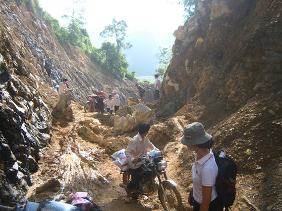 Hàng ngày các em học sinh của Trường Tiểu học Thượng Nung Võ Nhai phải đi qua con đường này để đến trường...