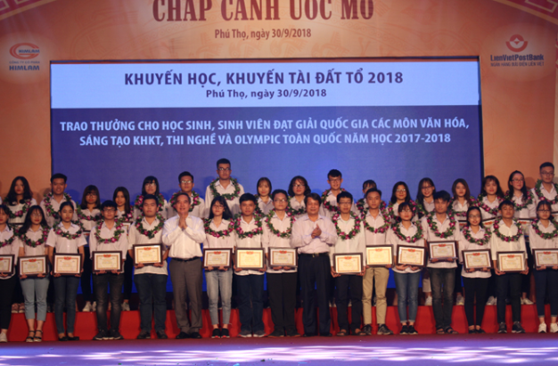 Chương trình “Khuyến học, khuyến tài Đất Tổ - Chắp cánh ước mơ” do Ngân hàng TMCP Bưu điện Liên Việt, Công ty Cổ phần Him Lam sáng lập, được tổ chức thường niên. Đây là chương trình có ý nghĩa nhân văn cao cả, góp phần động viên, chia sẻ, vinh danh các em học sinh, sinh viên, các thầy cô giáo, huấn luyện viên có nhiều cống hiến và thành tích xuất sắc trong học tập và giảng dạy. Sau 8 năm hoạt động, tính đến nay, Hội đồng Quản lý Quỹ Khuyến học, khuyến tài Đất Tổ đã trích gần 10 tỷ đồng trong số tiền lãi hằng năm để vinh danh, khen thưởng cho hàng nghìn học sinh, sinh viên đạt thành tích xuất sắc tại kỳ thi chọn học sinh giỏi các môn văn hóa, thi tay nghề cấp tỉnh, cấp quốc gia và quốc tế; các em học sinh nghèo thi đại học đạt điểm cao và các thầy, cô giáo, huấn luyện viên có công bồi dưỡng, huấn luyện học sinh giỏi. Chất lượng giáo dục và đào tạo tiếp tục có bước chuyển biến. Đặc biệt đoàn học sinh giỏi Quốc gia của tỉnh Phú Thọ đạt kết quả cao, riêng năm học 2017 – 2018 đạt 68 giải, xếp thứ 3 toàn quốc về tỷ lệ đoạt giải. Kỳ thi THPT Quốc gia, tỉnh Phú Thọ có điểm trung bình các môn xếp thứ 13/63 tỉnh, giáo dục Phú Thọ luôn đứng top mạnh của cả nước. Năm 2018, Hội đồng Quản lý Quỹ đã trích trên 2 tỷ đồng để vinh danh, khen thưởng cho 211 học sinh, sinh viên, 03 đồng đội đạt thành tích xuất sắc và 18 cá nhân tiêu biểu làm tốt công tác khuyến học, khuyến tài, xây dựng xã hội học tập; các giáo viên, giảng viên, huấn luyện viên có học sinh đoạt giải Quốc tế, Quốc gia; trao thưởng cho học sinh, sinh viên đoạt giải Quốc gia các môn văn hóa, sáng tạo khoa học kỹ thuật, thi nghề, olympic toàn Quốc; đồng thời tiếp tục hỗ trợ cho Trường THPT chuyên Hùng Vương.