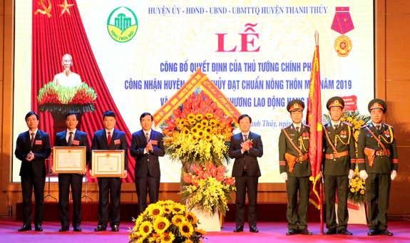 Thừa ủy quyền của Chủ tịch nước và Thủ tướng Chính phủ, Chủ tịch UBND tỉnh Bùi Văn Quang trao tặng Huân chương Lao động hạng Ba của Chủ tịch nước cho Đảng bộ, chính quyền và nhân dân huyện Thanh Thủy; trao Quyết định của Thủ tướng Chính phủ công nhận huyện Thanh Thủy đạt Chuẩn NTM năm 2019.