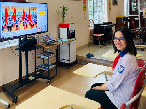 Học sinh trường THCS Văn Lang tham gia khai giảng trực tuyến
