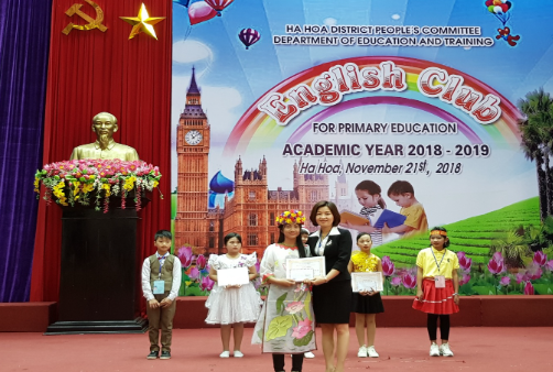 Bà Đỗ Thị Phong, Trưởng phòng GD&ĐT trao thưởng cho học sinh đoạt giải
