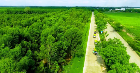 Đường vào “resort” xanh mướt với cây xanh và đồng cỏ mênh mông