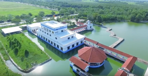 Khu nhà làm việc nổi trên mặt hồ là kiến trúc độc đáo tạo điểm nhấn cho “resort” bò sữa Tây Ninh