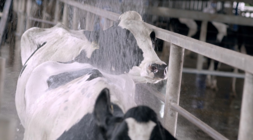 Hệ thống tắm mát tự động giúp bò luôn duy trì được sự thoải mái, mát mẻ - Ảnh: HOÀNG GIA