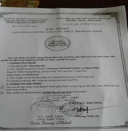 Đơn xác nhận nguồn gốc thực phẩm an toàn của các hộ dân