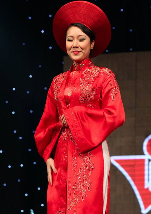 Trẻ trung thuần khiết với chiếc áo dài cách tân màu đỏ thắm