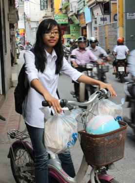 14h chiều thứ 7, Thảo (lớp 11 chuyên Anh 2, THPT chuyên ĐH Sư phạm Hà Nội) lại đến tiệm bánh quen thuộc nhận những chiếc sandwich đã được đóng cẩn thận trong túi giấy. Treo đủ 20 túi bánh lên ghi đông xe đạp, cô nàng phóng nhanh tới địa điểm khác, nơi có các bạn trong nhóm đang đợi lấy đồ ăn.