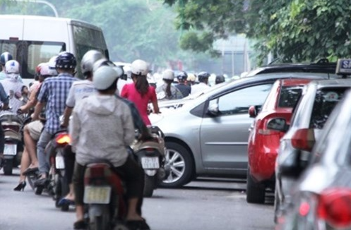 Tắc nghẽn giao thông vì ô tô đỗ tràn lan dưới lòng đường Hoàng Đạo Thúy2