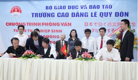 Trên cơ sở thực hiện chương trình tiếp nhận điều dưỡng viên Việt Nam sang Nhật Bản tu nghiệp được ký giữa Chính phủ nước Cộng hoà Xã hội chủ nghĩa Việt Nam và Chính phủ Nhật Bản; Trường Cao Đẳng Lê Quý Đôn đã tổ chức đào tạo các học viên nhằm đáp ứng đủ tiêu chuẩn làm tu nghiệp sinh ngành Điều Dưỡng.