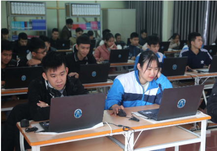 Một lớp học trong phòng công nghệ đa năng do Trường Đại học Mở Hà Nội đầu tư tại Trung tâm Giáo dục thường xuyên tỉnh Nam Định
