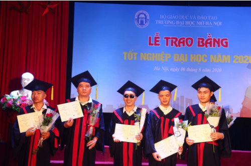 Niềm vui của sinh viên khiếm thị trong thời khắc nhận Bằng tốt nghiệp Đại học Từ xa