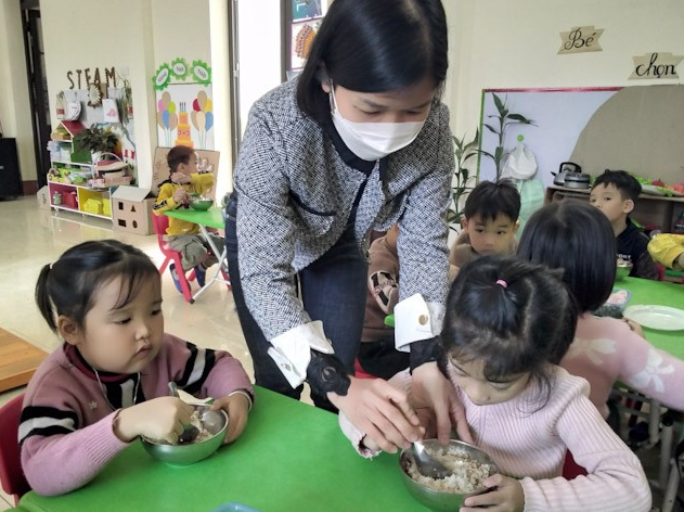 Giờ ăn của trẻ Trường Mầm non Xuân Lũng