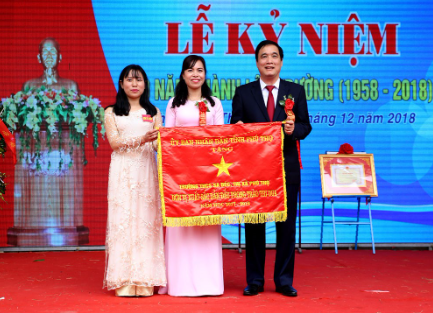 Bí thư Tỉnh ủy, Chủ tịch UBND tỉnh Phú Thọ Bùi Minh Châu tặng Cờ “Đơn vị xuất sắc dẫn đầu phong trào thi đua năm học 2017 - 2018” của UBND tỉnh cho Trường THCS Sa Đéc