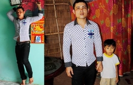 Thạch Sô Phách diễn tả lại cảnh bị treo lên trong tư thế buộc phải đứng bằng hai ngón chân cái. Sau bảy tháng trở về, Sô Phách đã mất vợ vì chị ấy nghĩ rằng chồng giết người, không còn cơ hội trở về với cuộc sống. Ảnh: TRẦN VŨ