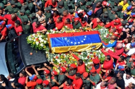 Hàng trăm nghìn người dân Venezuela hôm qua tập trung dọc đường phố, vẫy cờ và hô to "Chavez sống mãi" khi chiếc xe tang chở quan tài của ông diễu qua thủ đô trong 7 giờ, từ bệnh viện, nơi ông qua đời, đến học viện quân sự, nơi ông từng gọi là ngôi nhà thứ hai của mình.