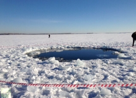 Hố lớn trên hồ băng Chebarkul được cho là do thiên thạch trong vụ mưa sao băng ở Nga gây ra.